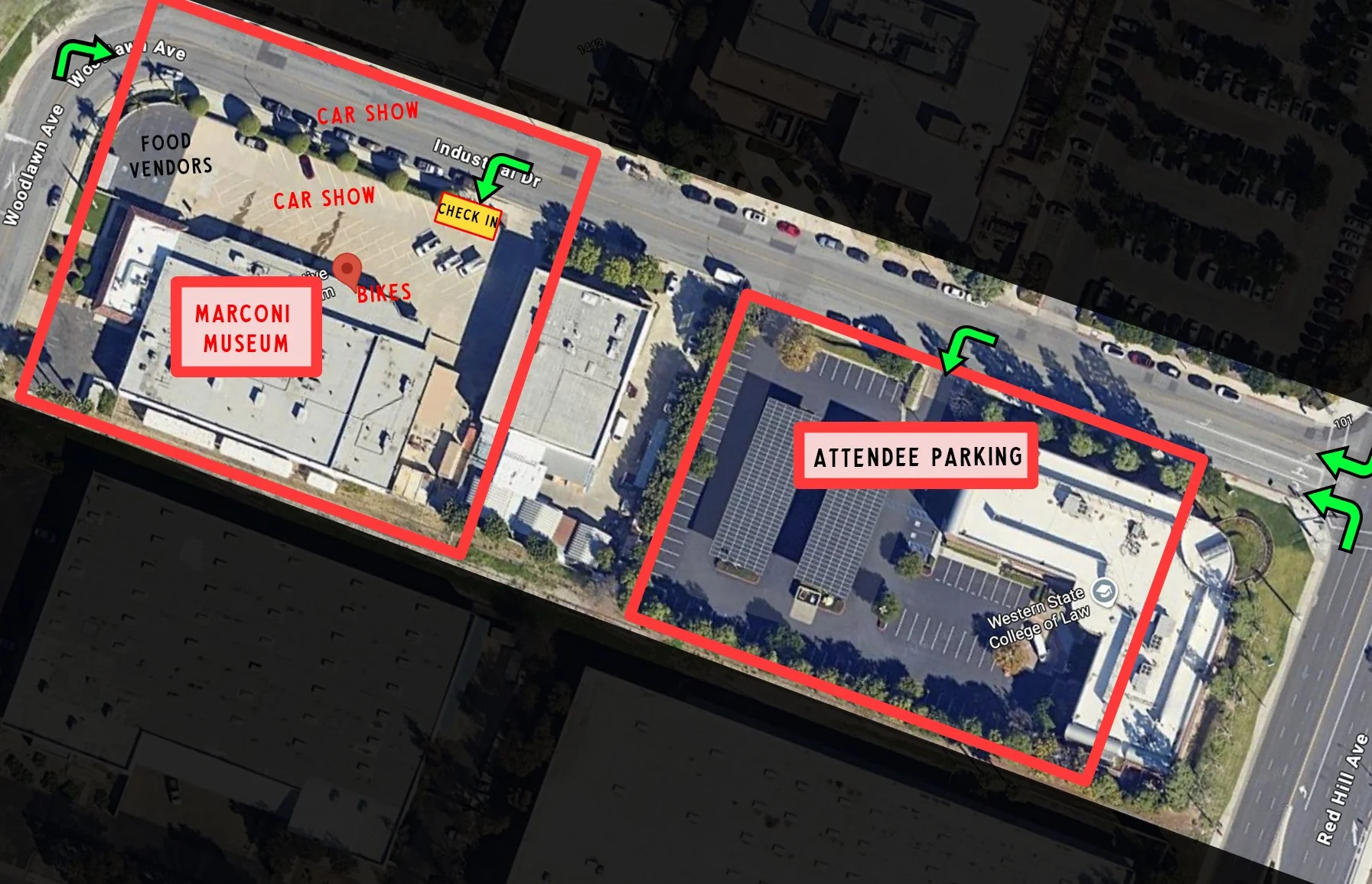 CARS - Turn onto Industrial Dr. We will have 2 show car parking options. If you are parking inside the lot, we ask that you remain parked for the duration of the show. Additional show parking will be available just outside of the gates, which allows for easier exiting throughout the day. Vehicle registration is required to park in both areas. We will ocntinue to accept cars into the show as space allows. After parking, please check in at the admission table to receive your wristband and vehicle info hang tag.